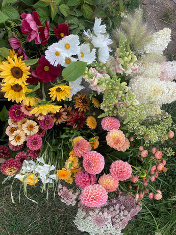 Local seasonal flowers can add the perfect touch to an event, anchoring it to a moment in time. We supply weddings, baby showers, birthday parties and other special events with our fresh cut flowers by the bucket. They are filled with a beautiful variety of flower types, colours, shapes and textures reflecting the season. You'll get the best blooms and foliage that are at their peak at the time of your event so that you can put together your own stunning arrangements.